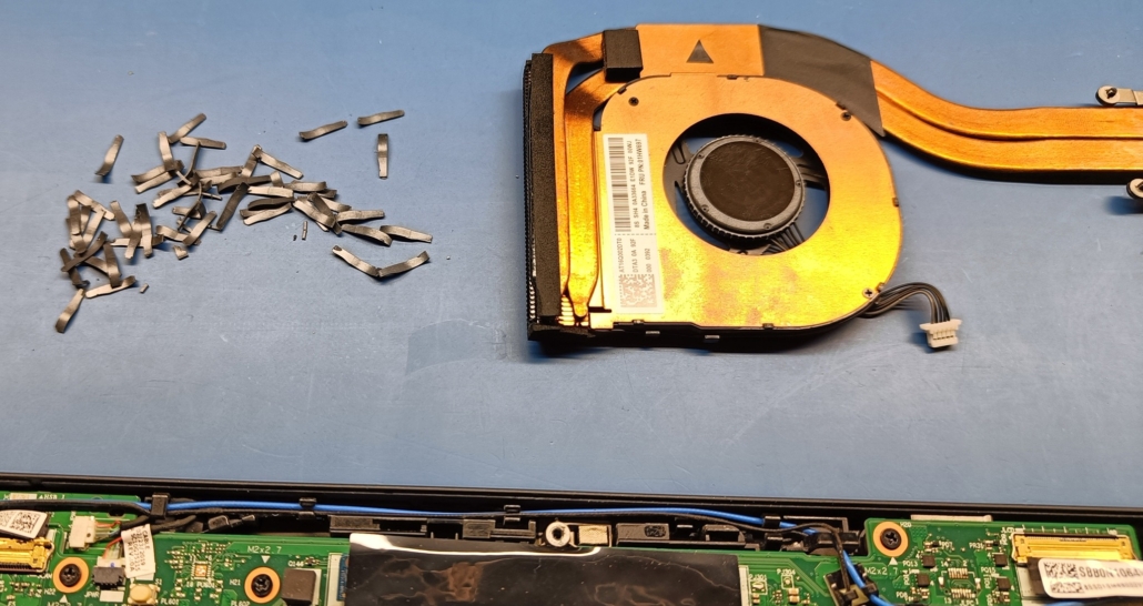 Jeden z naszych klientów chciał samodzielnie przeczyścić układ chłodzenia swojego laptopa… niestety, użył do tego kompresora. Efekt? Wszystkie łopatki wentylatora dosłownie wyrwane z korzeniami! 😨💨